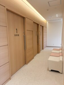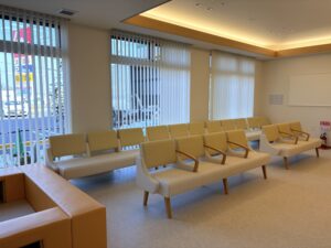 クリニックの待合室は黄色、中待合はピンクを基調にしています。