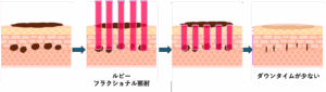 ❷フラクショナル照射ができるため、ダウンタイムの少ないシミ治療ができること